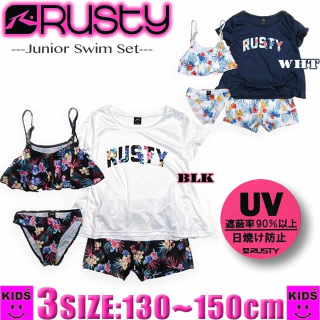女の子 水着 Rusty ラスティー キッズ サーフブランド ワイドtシャツ サーフパンツ付き ビキニ4点セット ジュニア 130 140 150 Venice Store 通販 Yahoo ショッピング